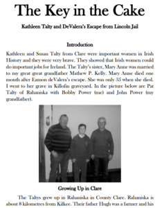 Prizewinning student project from the All-Island History Competition 2017 within the category of Women's History. The project explores the attempts made by Irish women (Tomasina McGarry, Mrs. O’Sullivan, Mary Healy and the Talty sisters) to help Eamon deValera escape from Lincoln jail.