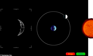 Animation visualising the phases of the moon from the aspect of standing on the Earth along with viewing from outer space. Students will see the new moon, waxing crescent moon, first quarter moon, waxing gibbous moon, full moon, waning gibbous moon, last quarter moon and the waning crescent moon.